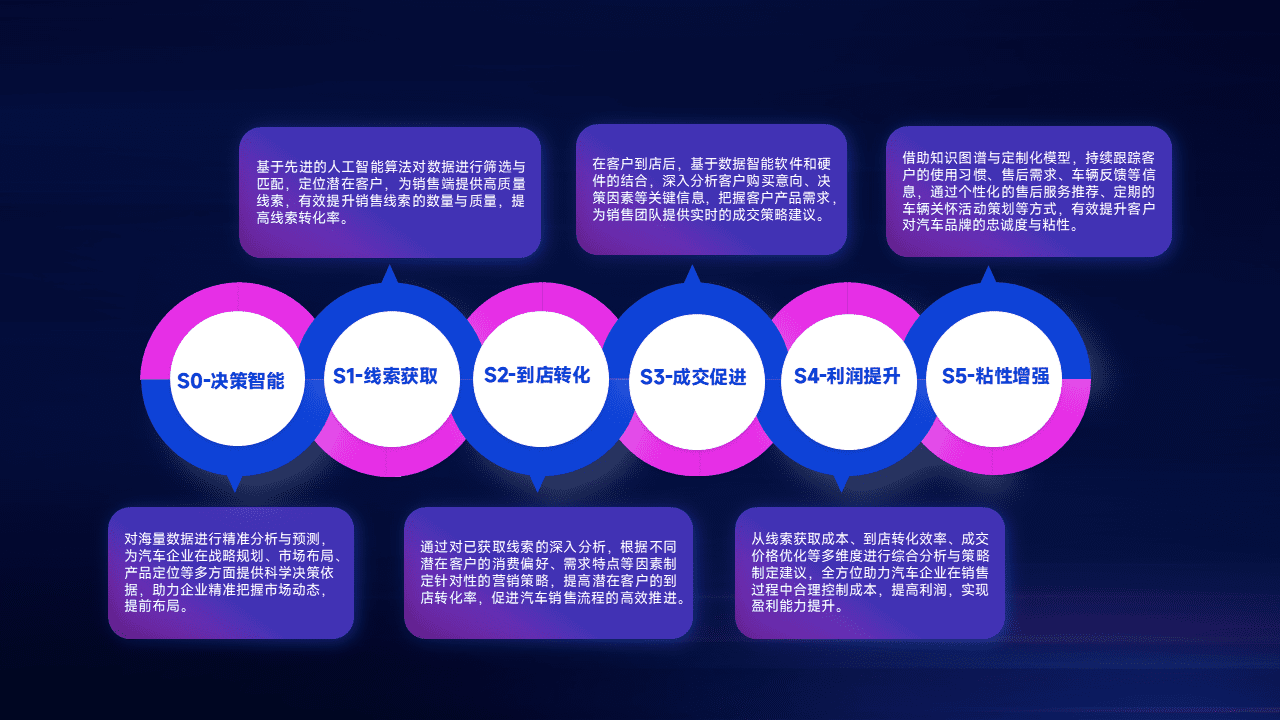 通过拓宽潜在客户来源、、、优化线索分配并提高到店转化率,,以增强销售效率。。。。同时,,,,利用线索数据不断优化分析模型,,,,有效提升转化率,,,,扩大营销影响力。。。